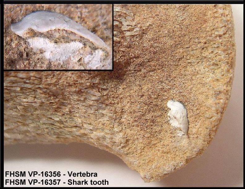 Dear Patricio, > As the traces are not going into the basal plate seems to me that the they should be done in the living shark and not postmortem. Have you consider microwear analysis? These could be "feeding traces" of sharks on other animals as well. Just an idea. I have not had a chance to do microwear analysis or SEM studies of the damaged teeth. I am open to all suggestions and appreciate your reply. Although the pictures I posted on the web do not show much detail in these traces, there is quite a lot there. The shallow grooves are symmetrical in cross section, and fairly uniform in width and depth, not something you would expect from damage or wear related to the shark's feeding activities. In comparison, here's a picture of a tooth of a contemporary but smaller species (/Squalicorax/) that was damaged by the impact of another, similar (serrated) tooth: http://www.oceansofkansas.com/sharks/Kansas/bittooth.jpg /Cretoxyrhina/ teeth (in this specimen and others) were very tough and seldom show evidence of visible wear on the cusps or cutting edges, or breakage while in the sharks jaw. Micro-wear is a subject that has not been extensively studied in /Cretoxyrhina/ so far as I am aware. For the most part, I suspect that their prey was relatively soft-bodied fishes. We do occasionally find the tips of their teeth embedded in the bones of prey species, especially marine reptiles: http://www.oceansofkansas.com/Niobrarasaurus/New%20dino/figure6t.jpg http://www.oceansofkansas.com/Niobrarasaurus/New%20dino/Figure6Tc.jpg Thanks for your comments. Best regards, Mike Everhart Adjunct Curator of Paleontology Sternberg Museum of Natural History Fort Hays State University, Hays, KS www.oceansofkansas.com >Dear Mike, > >As the traces are not going into the basal plate seems to me that the they should be done in the living shark and not postmortem. Have you consider microwear analysis? These could be "feeding traces" of sharks on other animals as well. Just an idea. > >Patricio Dominguez > >----- Mensaje original ----- >De: Mike Everhart <mike@oceansofkansas.com> >Fecha: Martes, Septiembre 13, 2005 3:51 am >Asunto: paleonet Invertebrate feeding traces on fossil shark teeth > > > >>All, >>A small number of fossil shark teeth from the Late Cretaceous >>marine >>deposits in Kansas (Cenomanian-Coniacian) have what appear to be >>feeding >>traces (radula?) of a small invertebrate (gastropod?). I am >>curious to >>know if others have observed similar damage to shark teeeth, and >>to know >>what might be 'feeding' on the enamel of these teeth. >> >>Most of the teeth have been identified as /Cretoxyrhina mantelli/, >>which >>is generally considered to be the largest shark of the time in >>the >>Western Interior Sea. >> >>Pictures of a /Cretoxyrhina/ tooth with feeding traces are shown here: >>http://www.oceansofkansas.com/Temp6.html >> >>Regards, >> >>Mike Everhart >>Adjunct Curator of Paleontology >>Sternberg Museum of Natural History >>Fort Hays State University, Hays, KS >>www.oceansofkansas.com >> >> >> >> >> >> >> >> > > > > > >